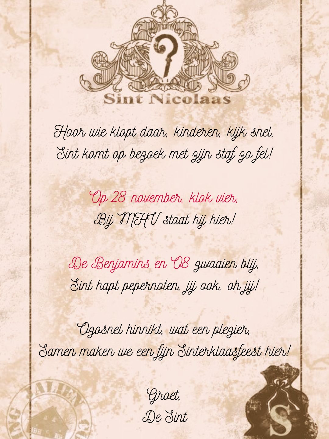 Op vrijdag 28 november is het zover: Sinterklaas komt met zijn Pieten naar MHV!
