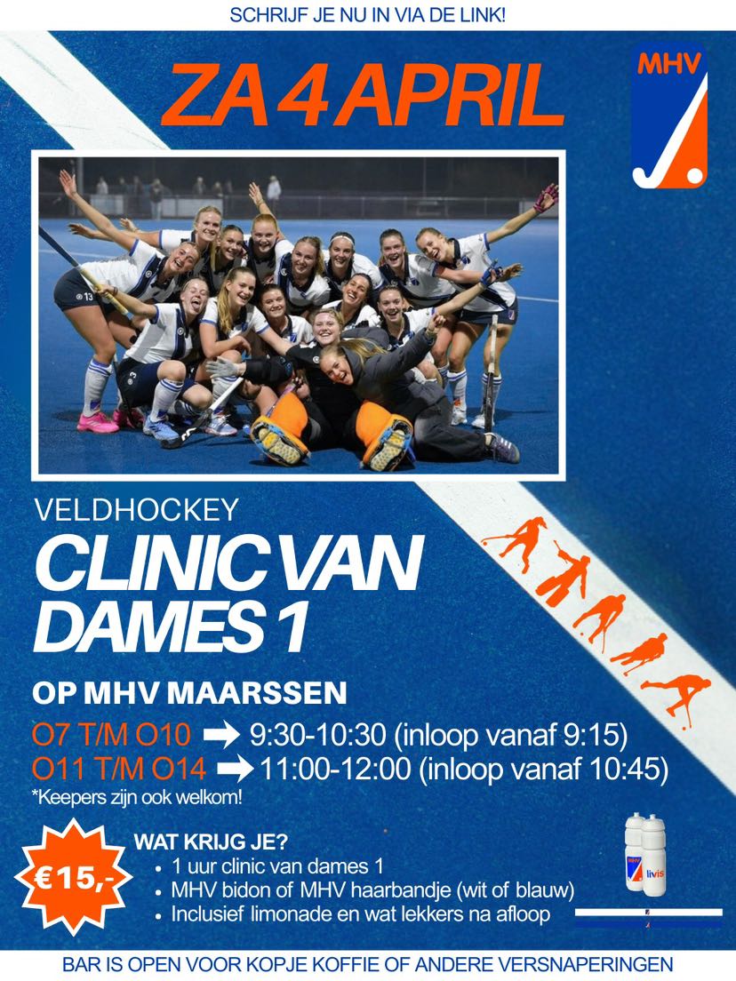 Op zaterdag 4 april organiseert Dames 1 een spetterende clinic! Ben jij er ook?🤩🙌🏼